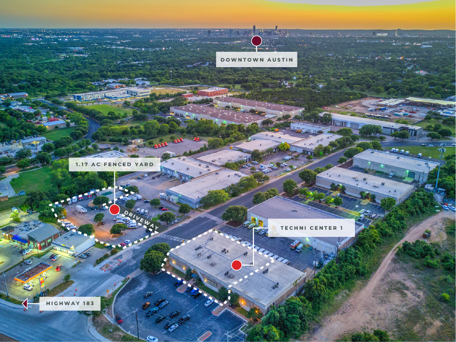 Techni Center is ideally located in East Austin, 5 miles from downtown and 7 miles from Austin-Bergstrom International Airport, with frontage and direct access to Hwy 183. The project offers a prime opportunity for businesses seeking a strategic and convenient hub for their industrial operations.